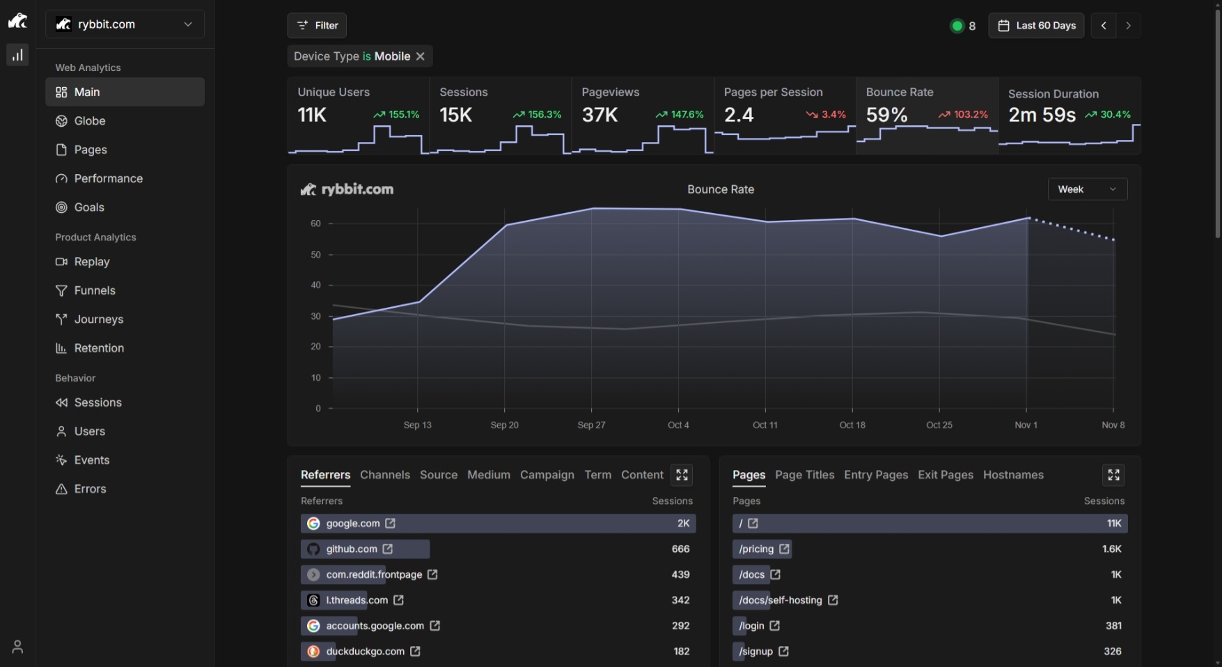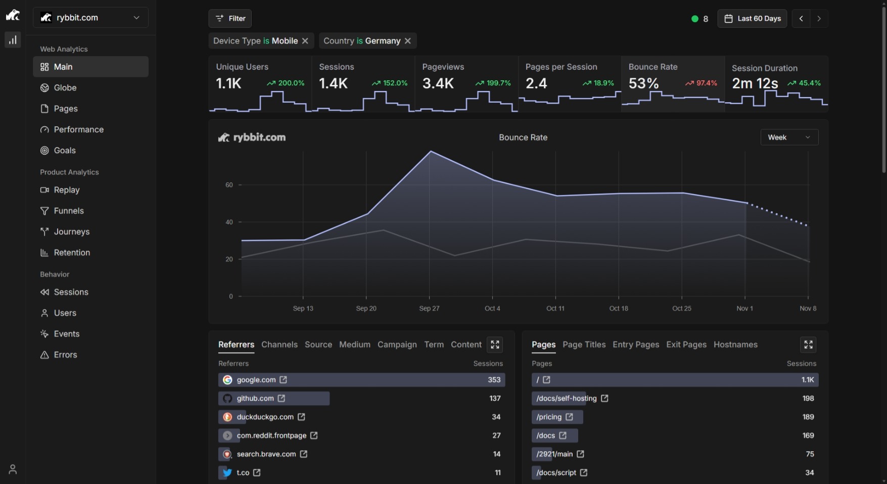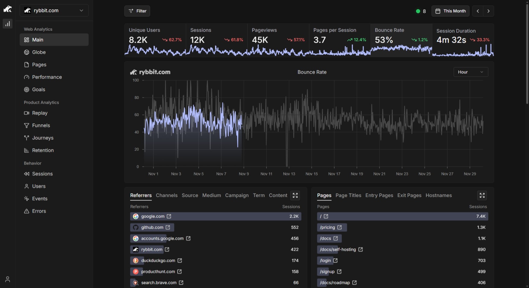 Bounce rate reveals a lot about user engagement. BuddyStat makes the data accessible and actionable. Real-time tracking, session replays, detailed filters, and privacy-focused analytics give you everything needed to convert insights into improvements.