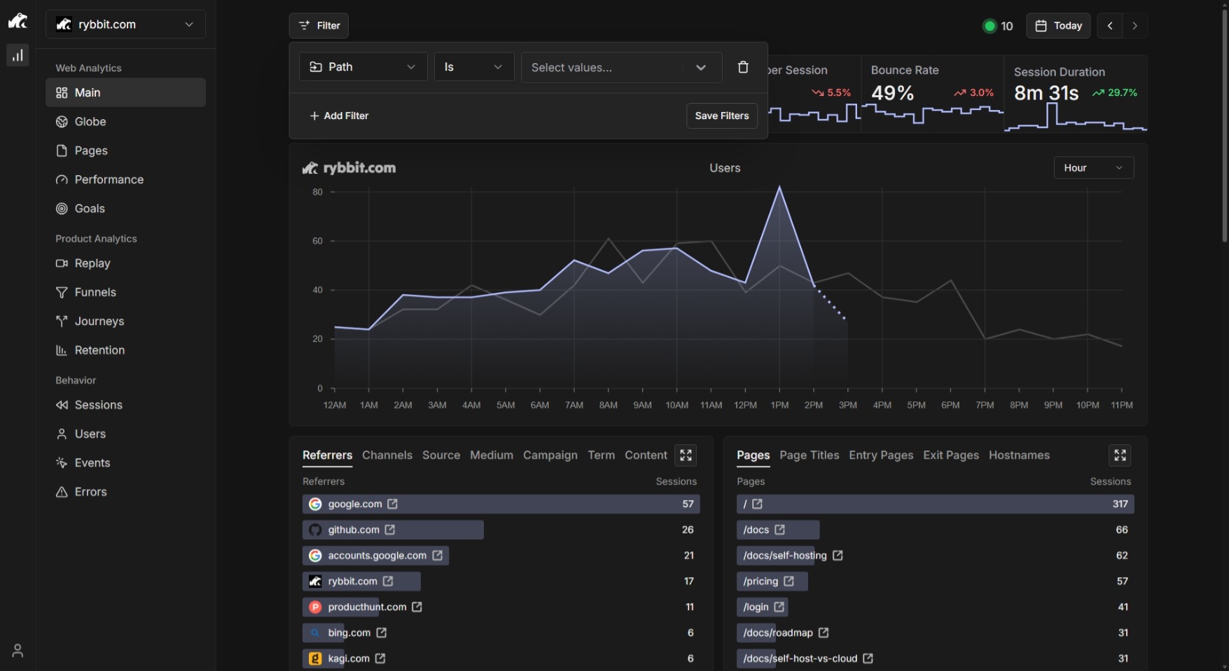Switching from Google Analytics, Plausible, or Umami? Key differences: